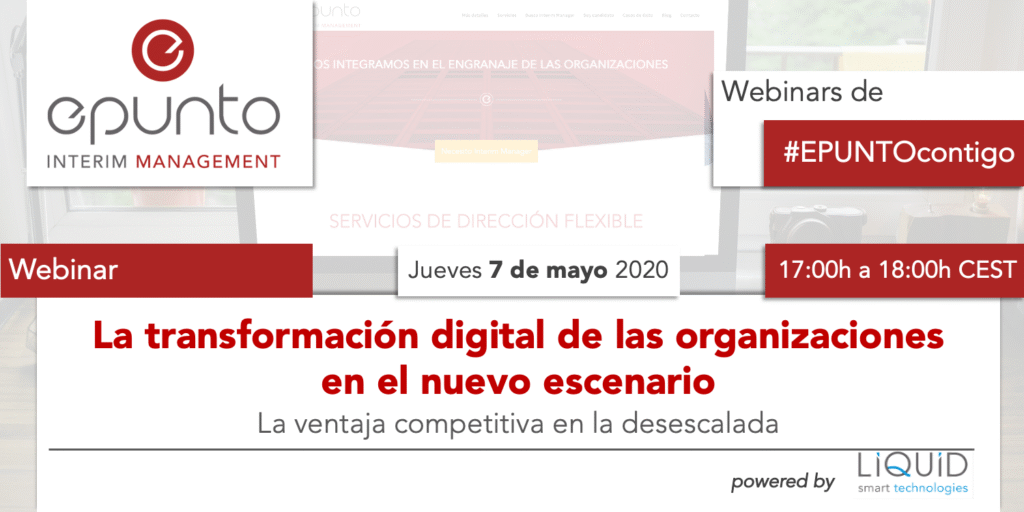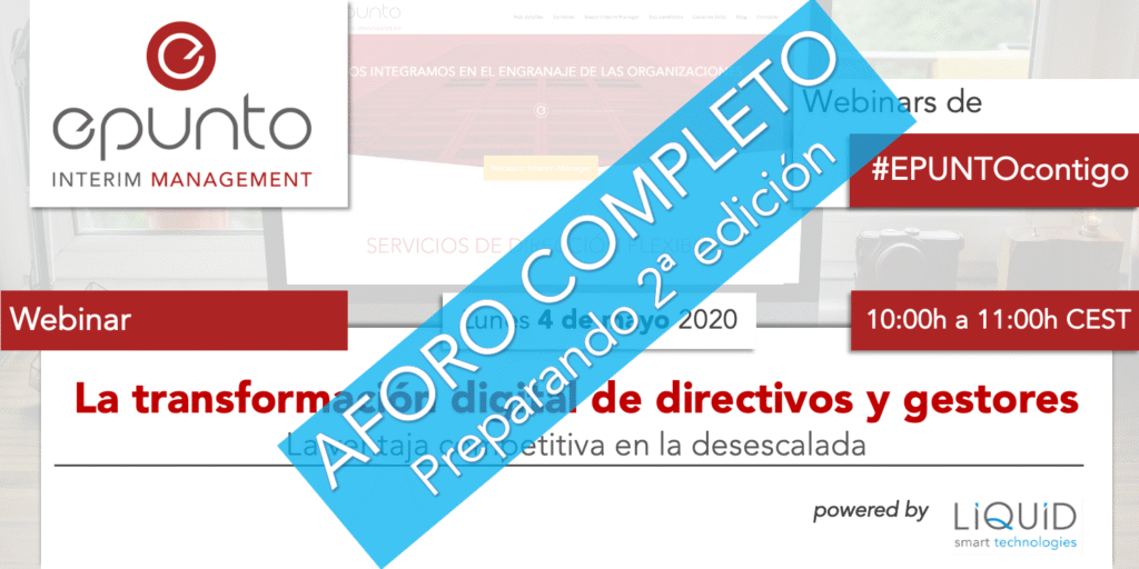 ACTUALIZACIÓN – 8/05/2020: Video de YouTube con la sesión completa: ¿La empresa que diriges está preparada para el nuevo escenario tras la crisis? ¿Tus capacidades digitales están bien desarrolladas para